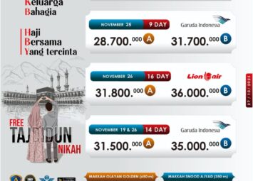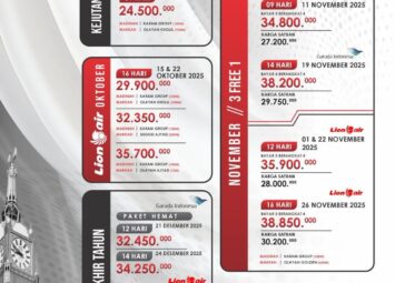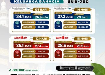 UMROH KELUARGA BAHAGIA – GARUDA INDONESIA! Berangkat Juli & Agustus 2025! Harga MULAI 30 JUTA-an aja! Cukup DP 5 JUTA! Pilihan Paket Lengkap: 12 Hari – Rp 30,250.000 14 Hari – Rp...