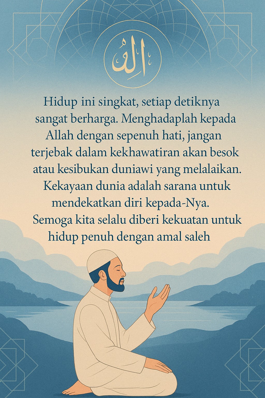 Hidup ini singkat, dan setiap detiknya sangat berharga. Oleh karena itu, marilah kita menghadap kepada Allah dengan sepenuh hati, meninggalkan kekhawatiran akan besok yang belum pasti, dan tidak terjebak dalam kesibukan duniawi yang bisa melalaikan kita. Kekayaan dan kesenangan dunia tidak boleh membuat kita lupa akan Allah, tetapi harus menjadi sarana untuk mendekatkan diri kepada-Nya. Semoga kita semua diberikan kekuatan untuk menghadap Allah dengan segenap jiwa dan raga, serta hidup yang penuh dengan amal shaleh.