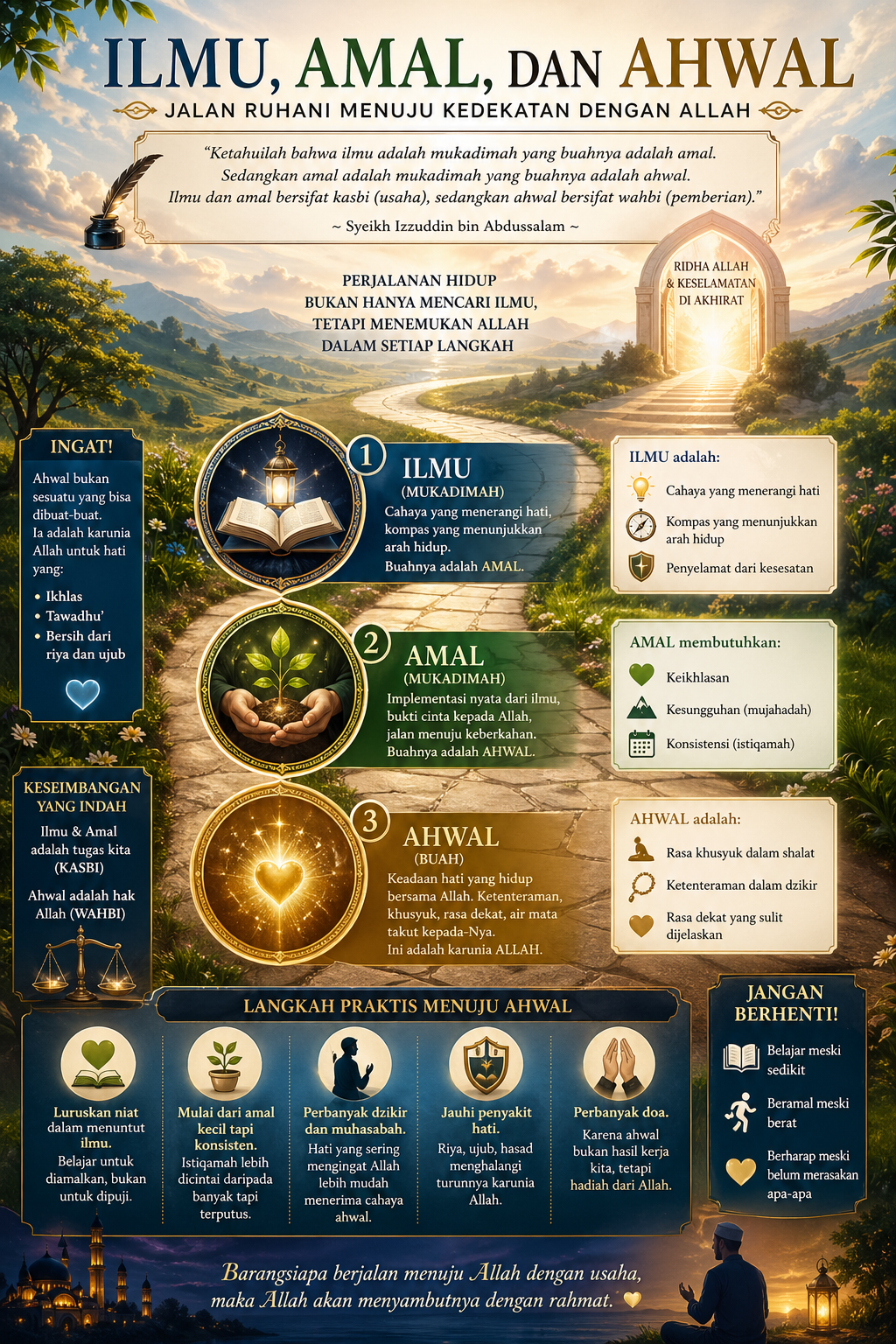 Namun tujuan akhirnya bukan sekadar ahwal, melainkan: Ridha Allah dan keselamatan di akhirat