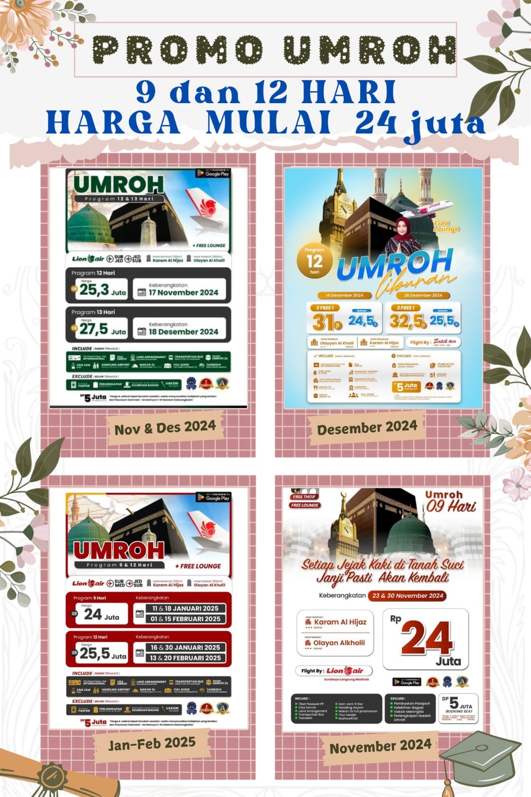 | Aspek | Umrah 9 Hari | Umrah 12 Hari |