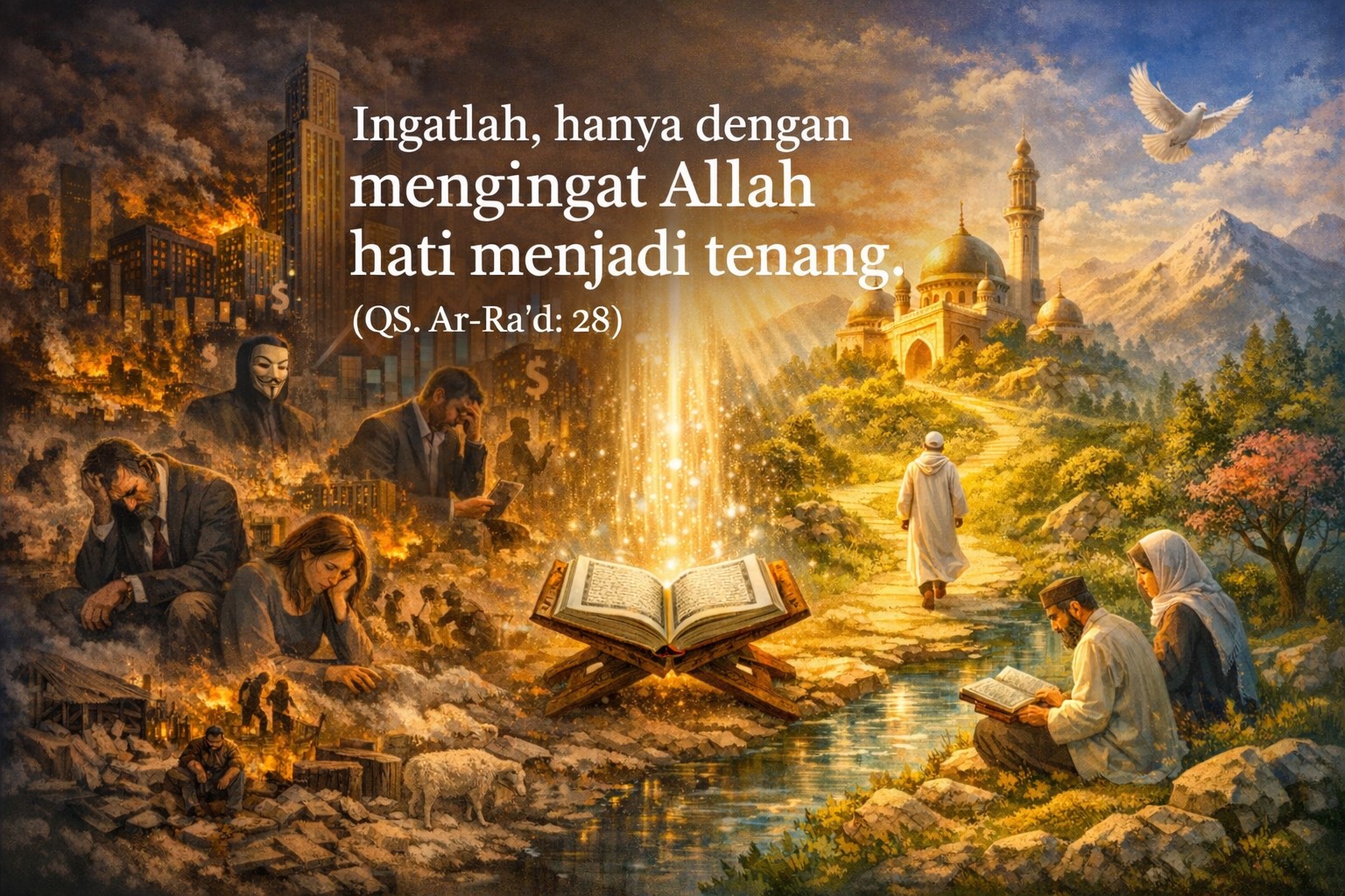 Di tengah gemerlap dunia modern, manusia tampak semakin maju—namun sekaligus semakin gelisah. Kota-kota menjulang tinggi, teknologi melesat tanpa batas, informasi mengalir deras dalam hitungan detik. Akan tetapi, di balik semua itu, ada kehampaan yang diam-diam menggerogoti jiwa manusia.