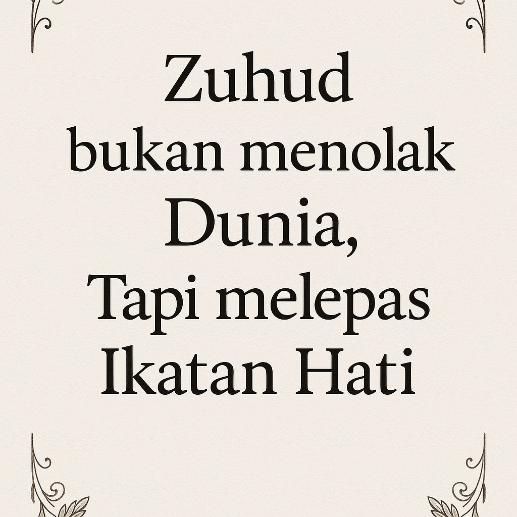 Artinya, zuhud bukan berarti menolak dunia secara total, melainkan menempatkan dunia di tangan, bukan di hati.